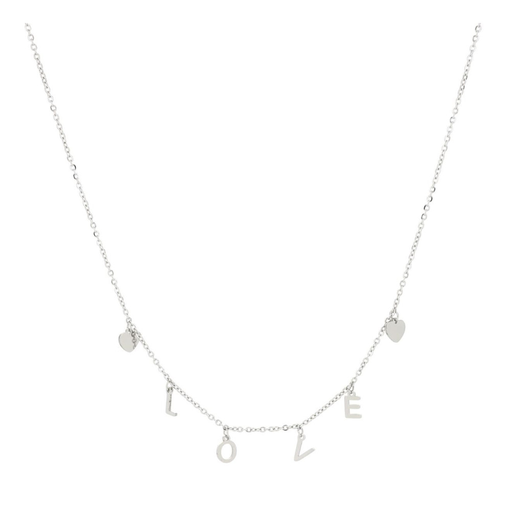 COLLANA AFRODITE CM 41+5 CON SCRITTA E CUORI MM 6 IN ACCIAIO