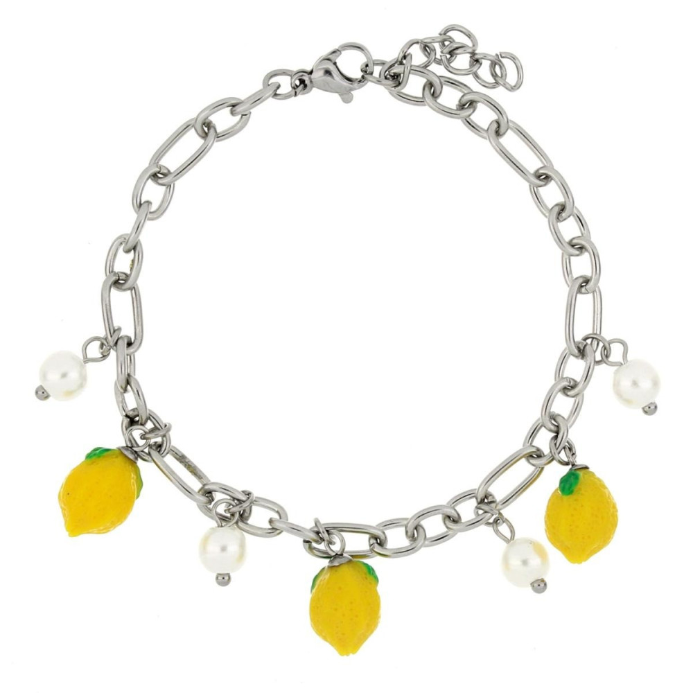 BRACCIALE "AMALFI" CON LIMONI E PERLE CM 17+3 IN ACCIAIO
