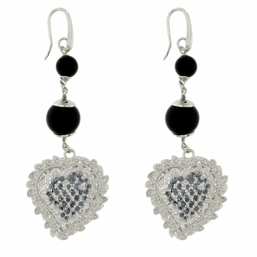ORECCHINI "AMAZZONE" IN OTTONE CON ONICE NERO CUORE