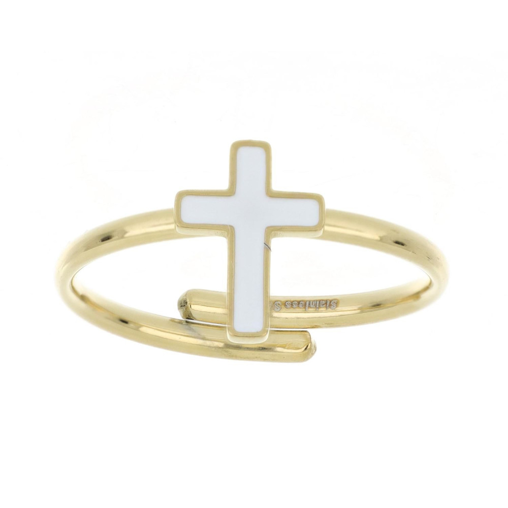 ANELLO "ADANA" CON CROCE BIANCA IN ACCIAIO