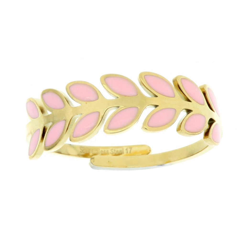 ANELLO "ADANA" CON FOGLIE ROSSE IN ACCIAIO