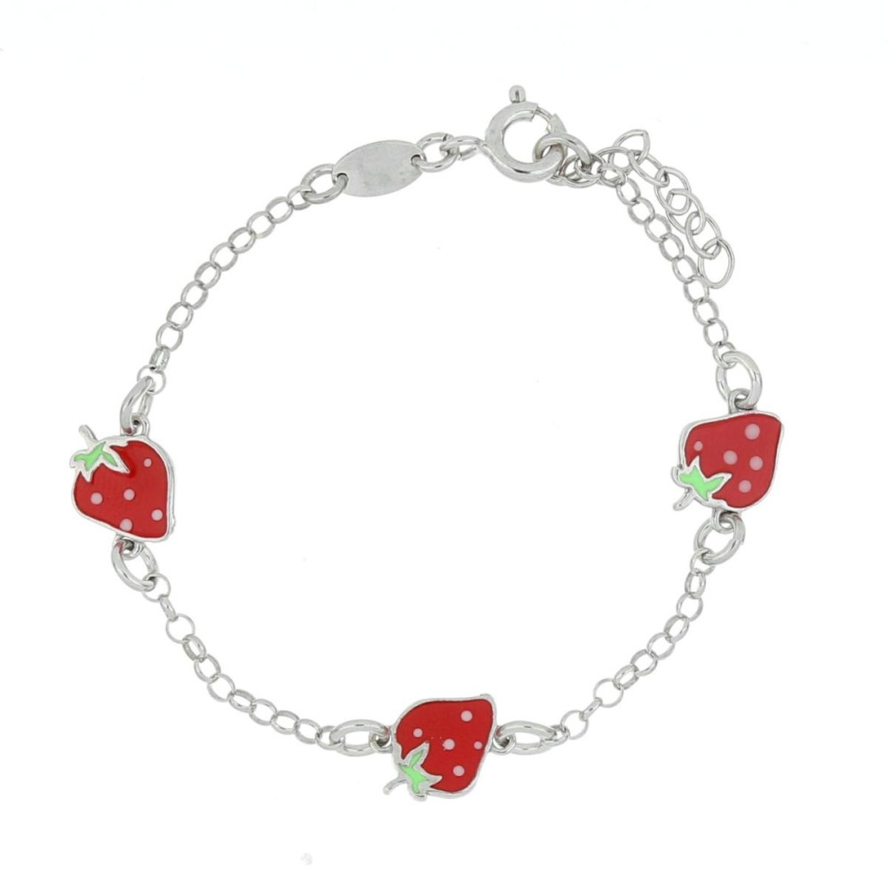 BRACCIALE BABY CM 14+2 CON 3 FRAGOLE IN ARGENTO 925