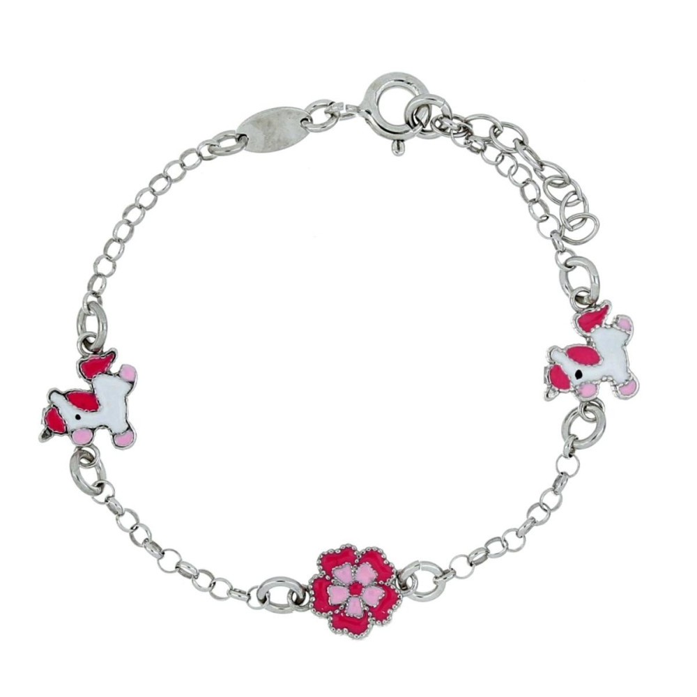 BRACCIALE BABY CM 14+2 CON FIORE E UNICORNI IN ARGENTO 925