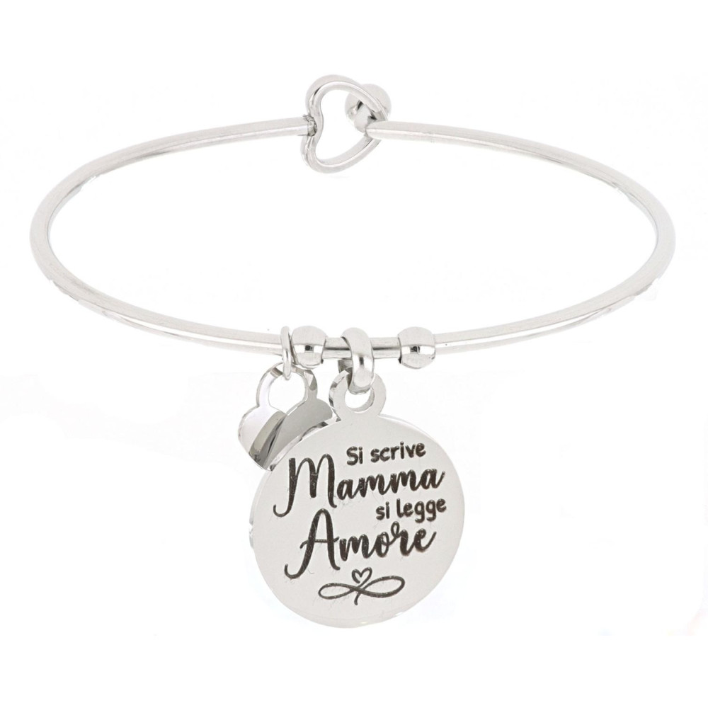 BRACCIALE "PENSIERO" IN ACCIAIO "SI SCRIVE MAMMA SI LEGGE AMORE"