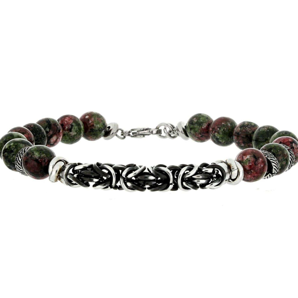 BRACCIALE UOMO IN PIETRA E ACCIAIO CM 19+2