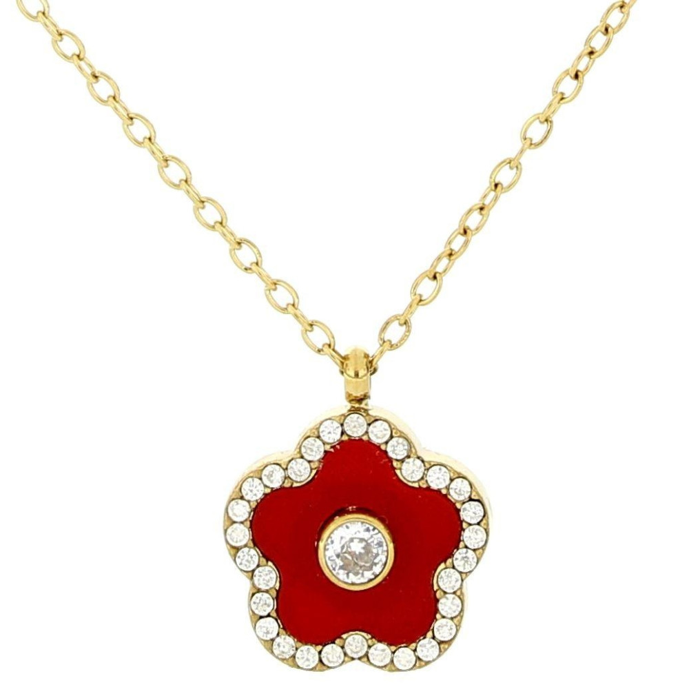 PENDENTE CALLIOPE CM 40+5 CON FIORE MM 14 IN ACCIAIO
