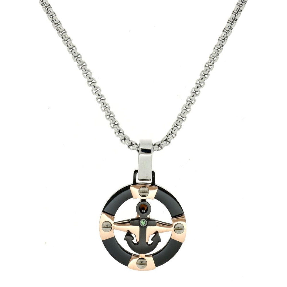 PEND.IN ACCIAIO CM 45+5 CON 1 DIAMANTE VERDE/SI MM 1 CT 0,008