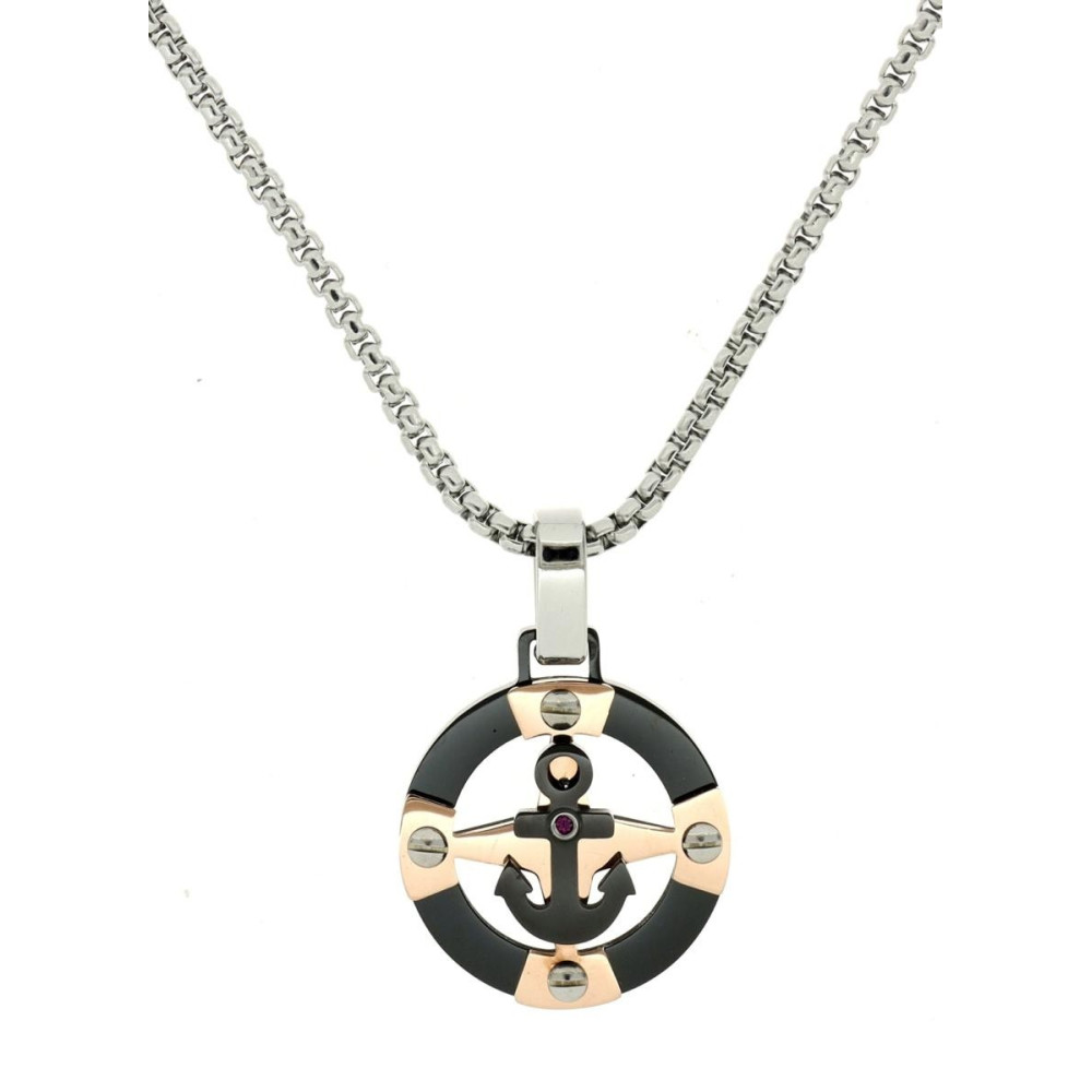 PEND.IN ACCIAIO CM 45+5 CON 1 DIAMANTE ROSSO/SI MM 1 CT 0,008
