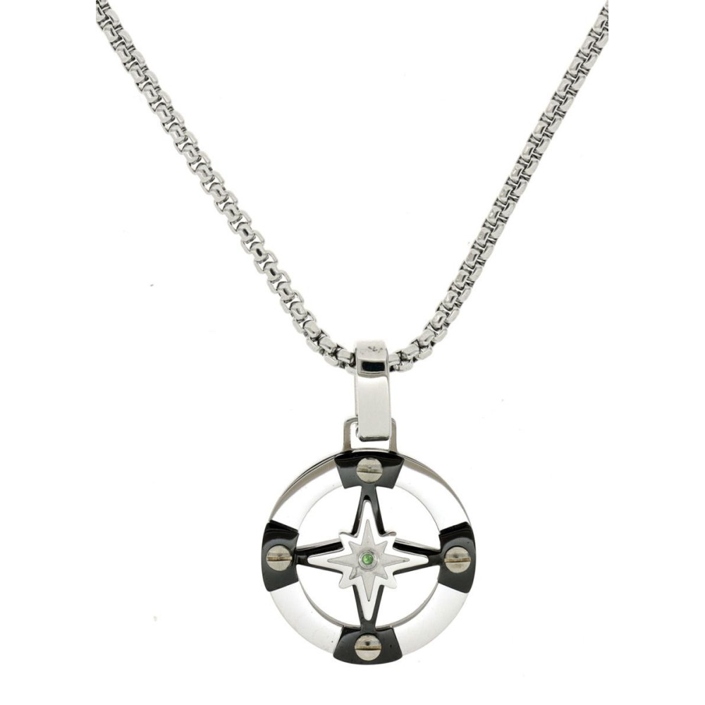 PEND.IN ACCIAIO CM 45+5 CON 1 DIAMANTE VERDE/SI MM 1 CT0,008