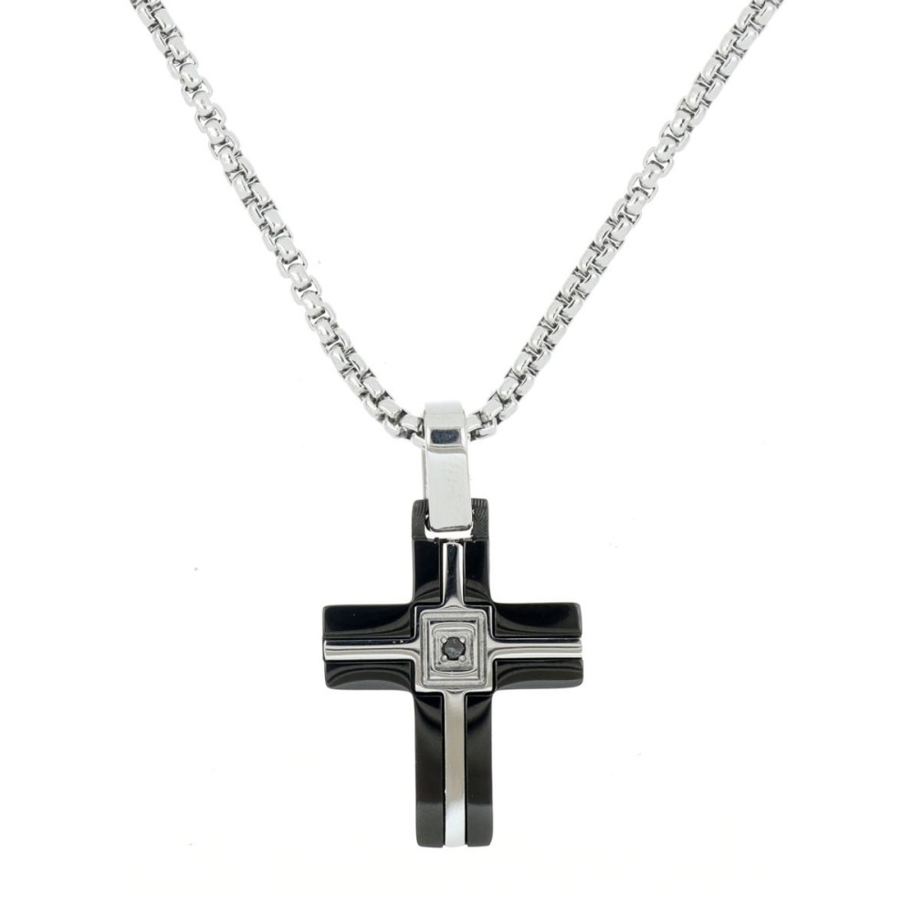 PEND. IN ACCIAIO CM 45+5 CON 1 DIAMANTE NERO/SI MM1,2 CT 0,09