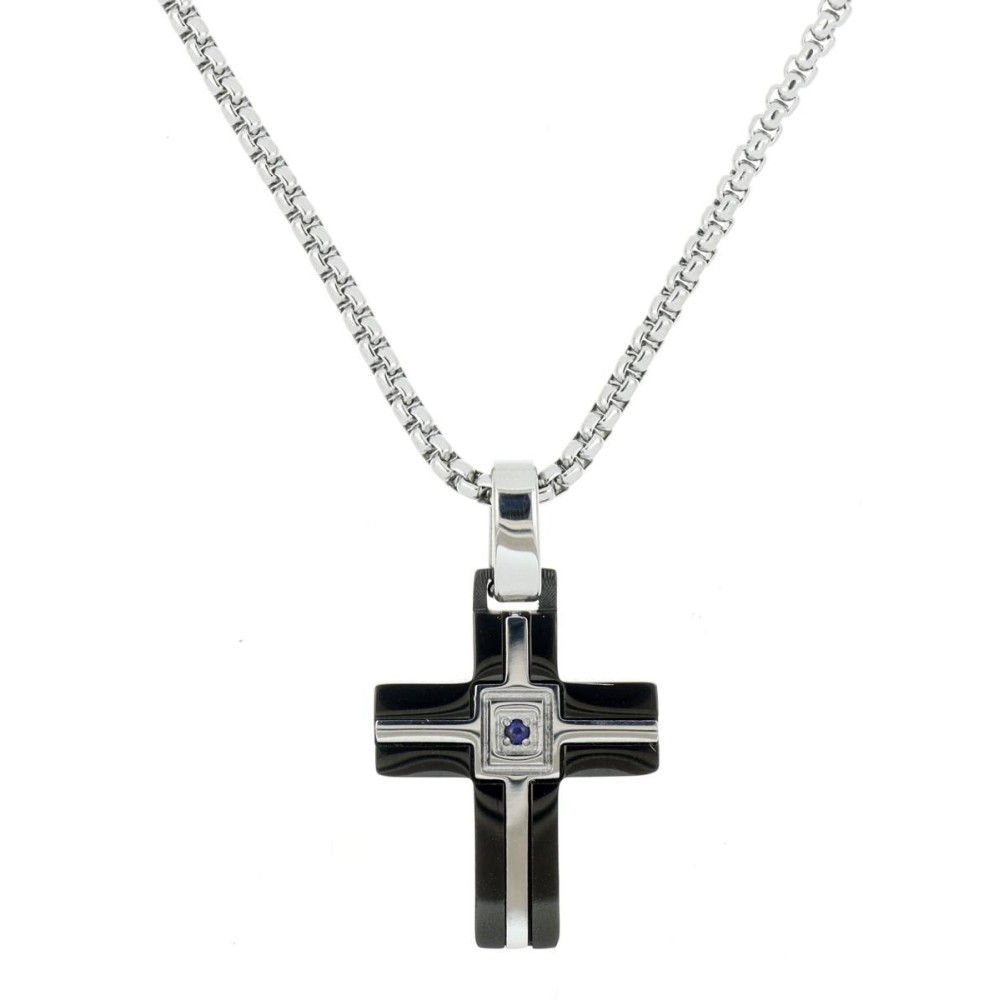 PEND.IN ACCIAIO CM 45+5 CON 1 DIAMANTE BLU/SI MM1,2 CT0,09