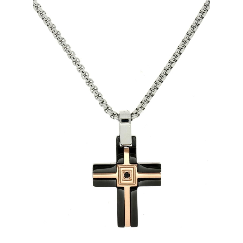 PEND.IN ACCIAIO CM 45+5 CON 1 DIAMANTE NERO/SI MM 1,2 CT0,09