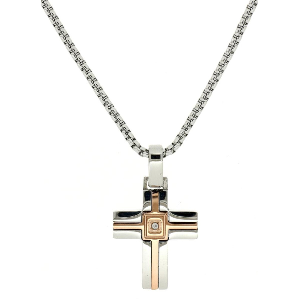 PEND.IN ACCIAIO CM 45+5 CON 1DIAMANTE BIANCO I/SI MM1,2 CT0,09