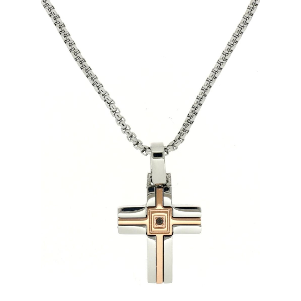 PEND.IN ACCIAIO CM 45+5 CON 1 DIAMANTE NERO/SI MM 1,2 CT0,09