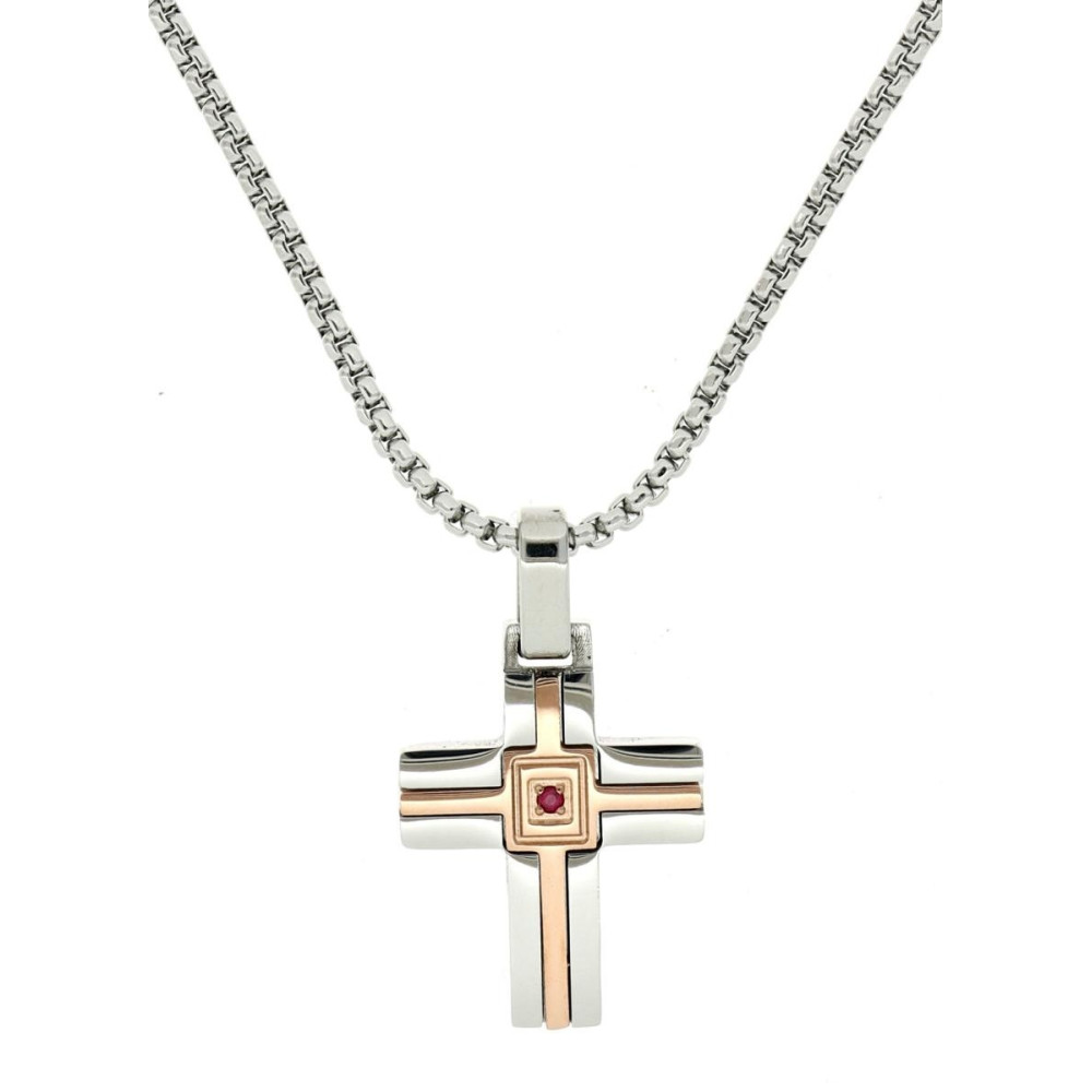 PEND.IN ACCIAIO CM 45+5 CON 1 DIAMANTE ROSSI/SI MM1,2 CT0,09