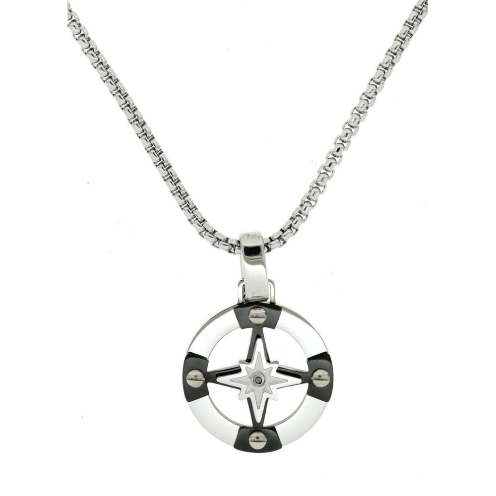 PEND.IN ACCIAIO CM 45+5 CON 1 DIAMANTE NERO/SI MM 1 CT0,008