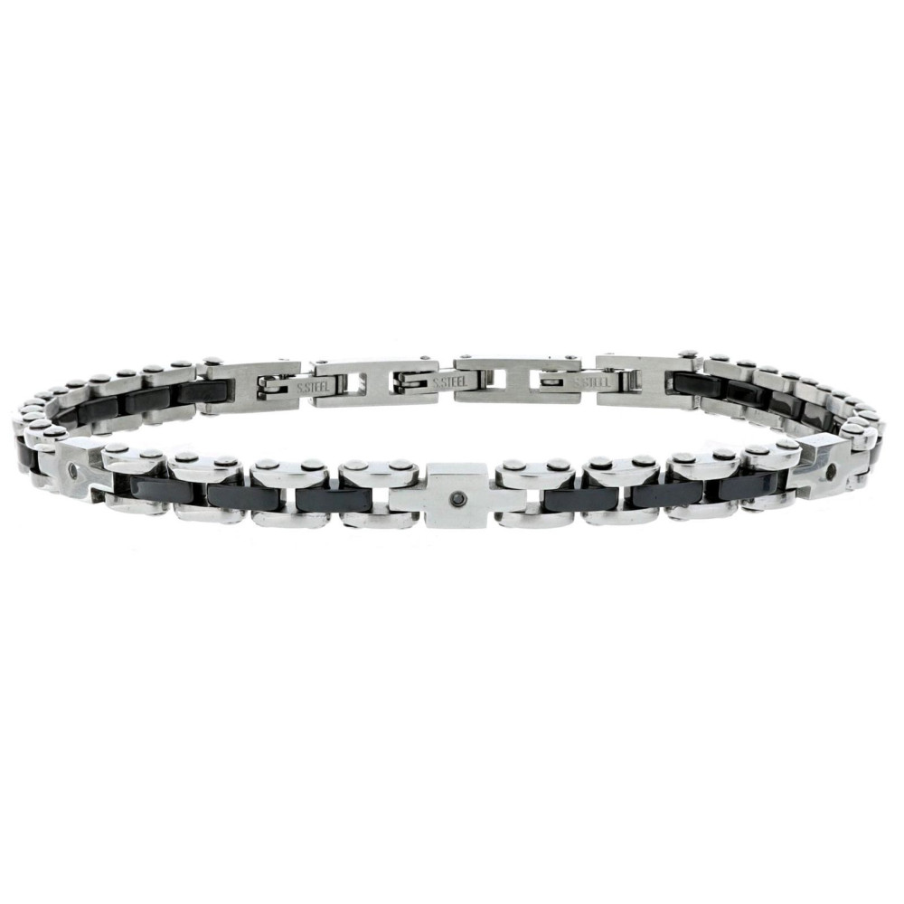 BRAC. IN ACCIAIO CM18+3 CON 3 DIAMANTI NERI/SI 1MM CT 0,008
