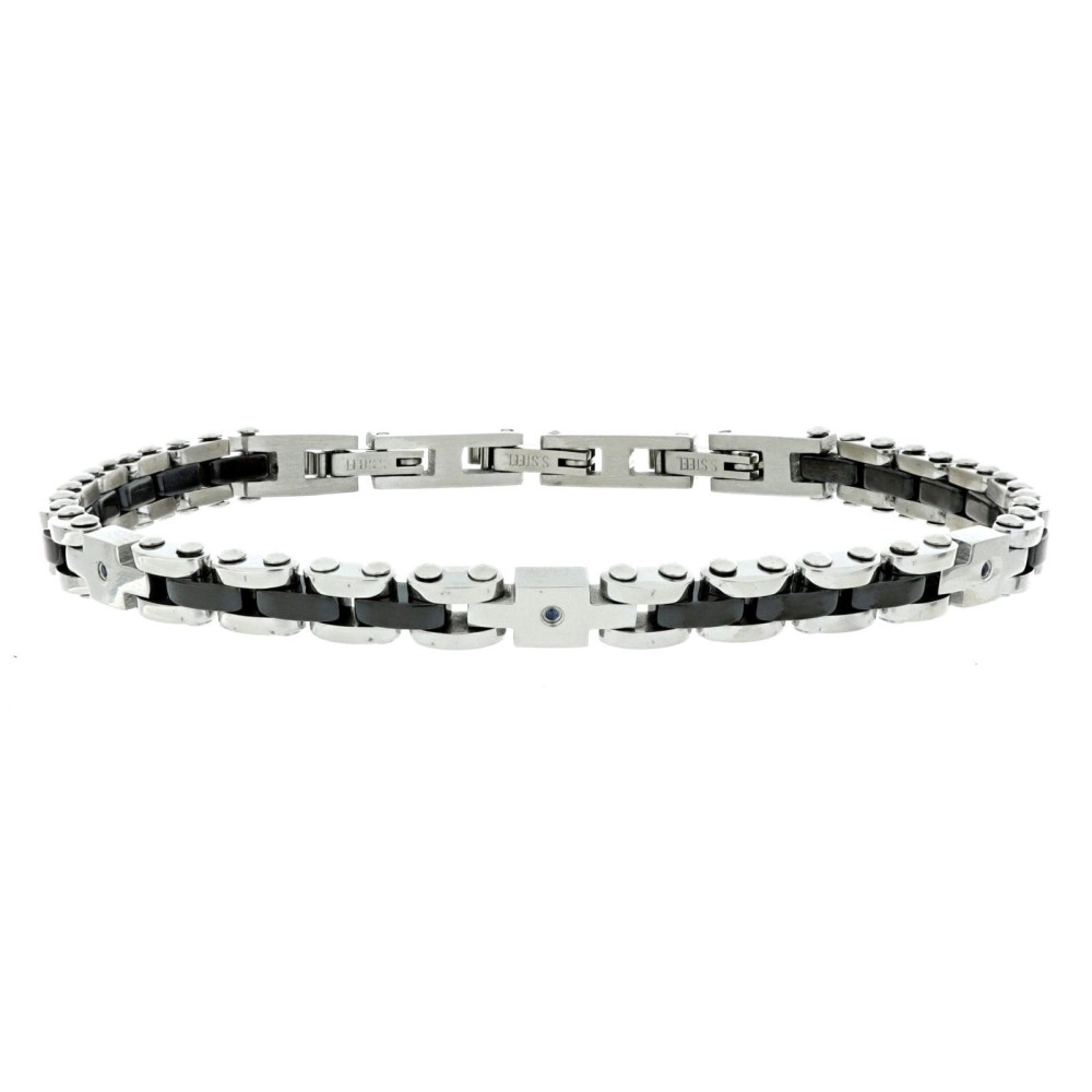 BRAC. IN ACCIAIO CM18+3 CON 3 DIAMAMANTI BLU/SI 1MM CT 0,008