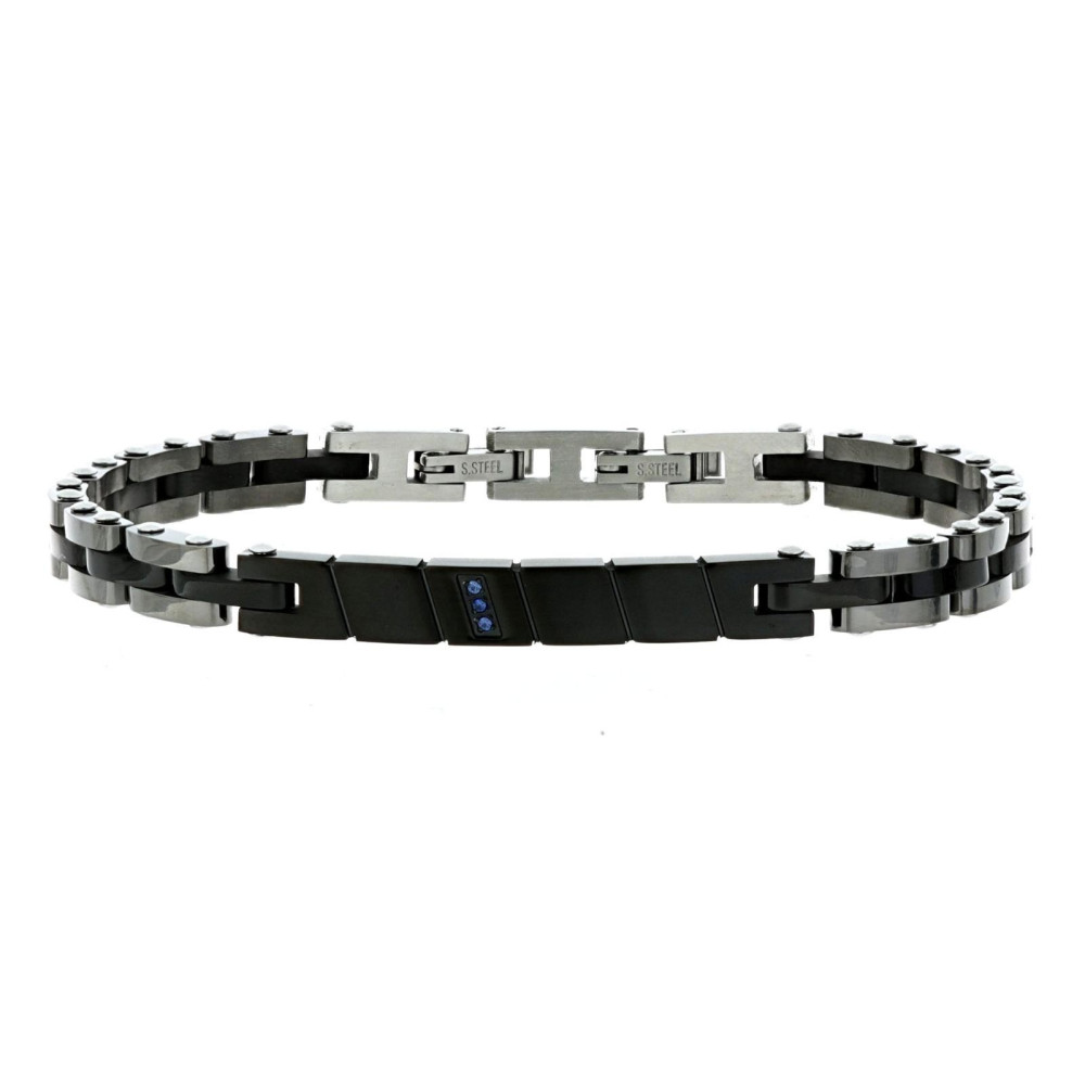 BRAC.IN ACCIAIO CM18+3 CON 3 DIAMANTI BLU/SI 1MM CT 0,008