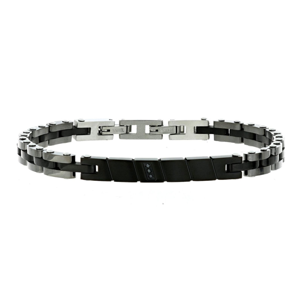 BRAC.IN ACCIAIO CM18+3 CON 3 DIAMANTI NERI GH/SI 1MM CT 0,008