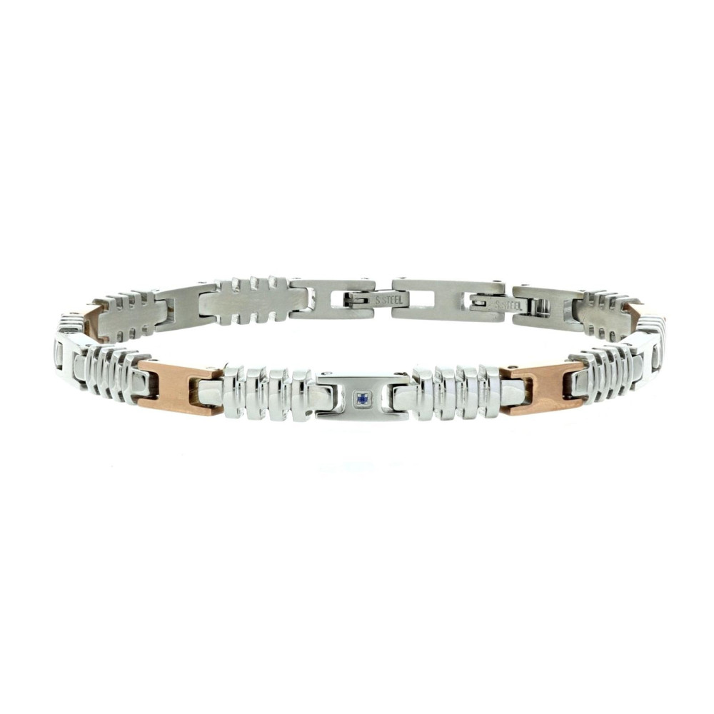 BRAC. IN ACCIAIO CM 18+3 CON 1 DIAMANTE BLU/SI 1MM CT 0,008