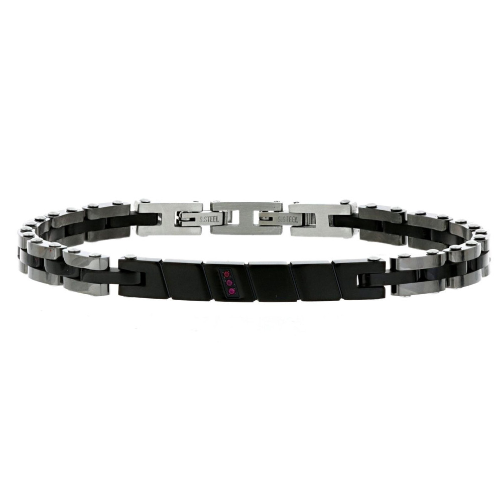 BRAC.IN ACCIAIO CM18+3 CON 3 DIAMANTI ROSSI/SI 1MM CT 0,008