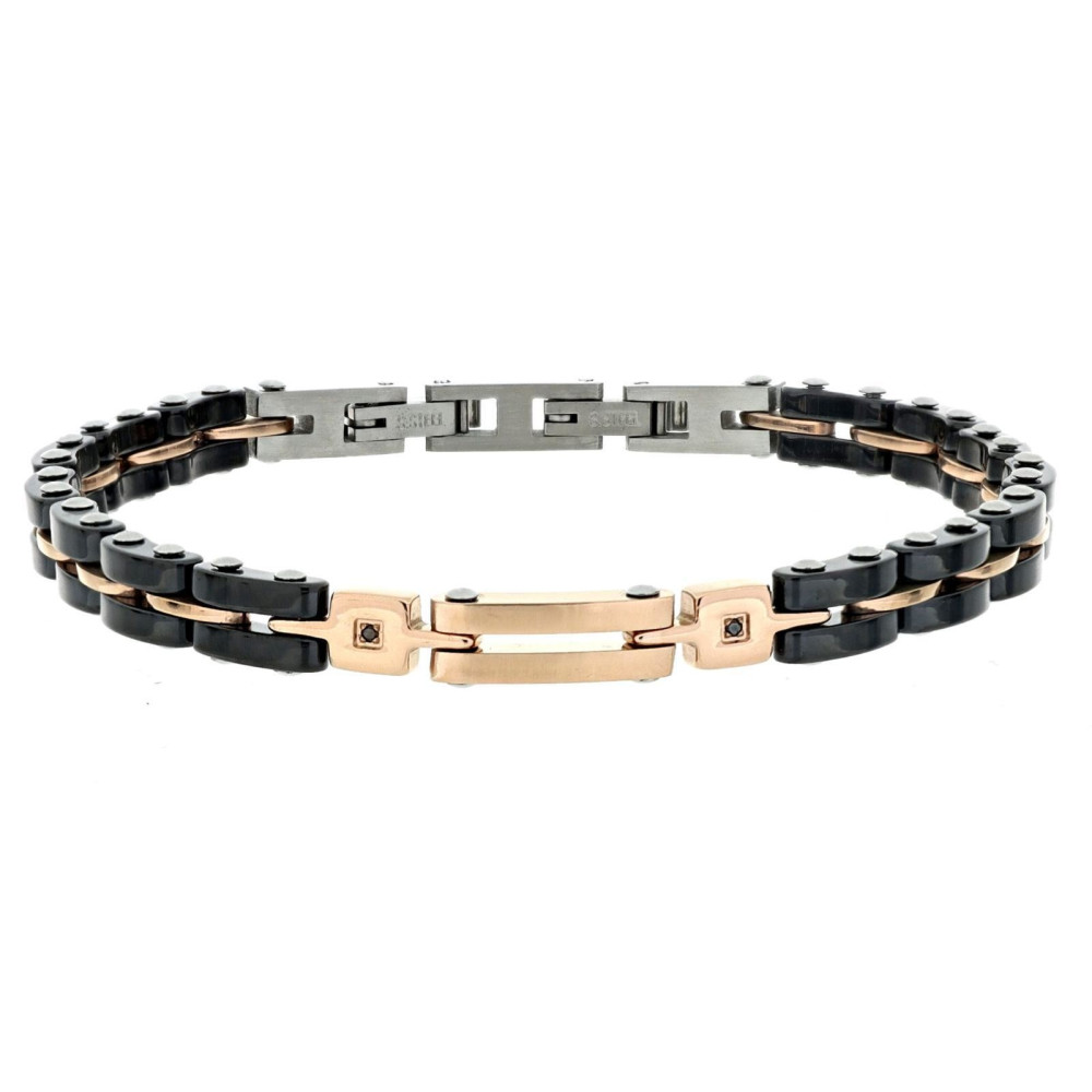 BRAC.IN ACCIAIO CM 22 CON 1 DIAMANTI NERO/SI 1MM CT 0,008