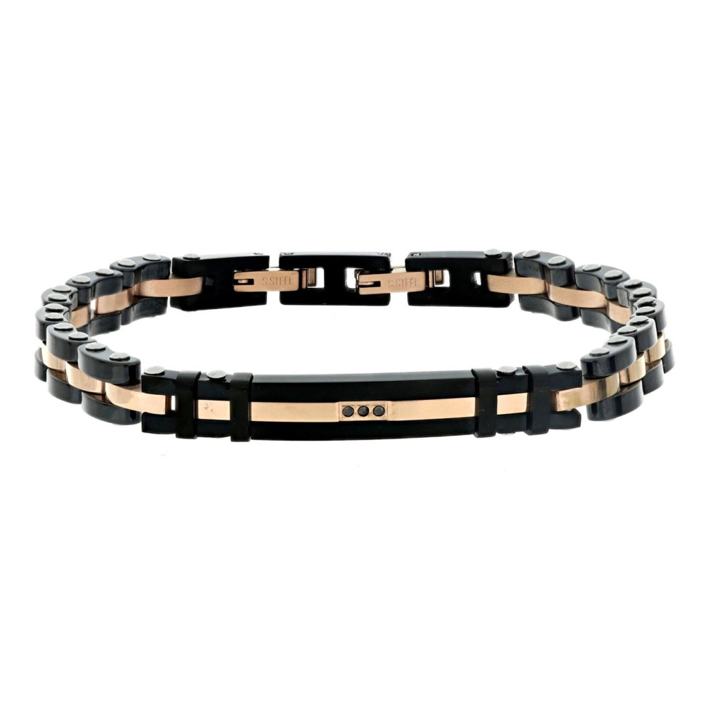 BRAC.IN ACCIAIO CM 22 CON 3 DIAMANTI NERO/SI 1MM CT 0,008