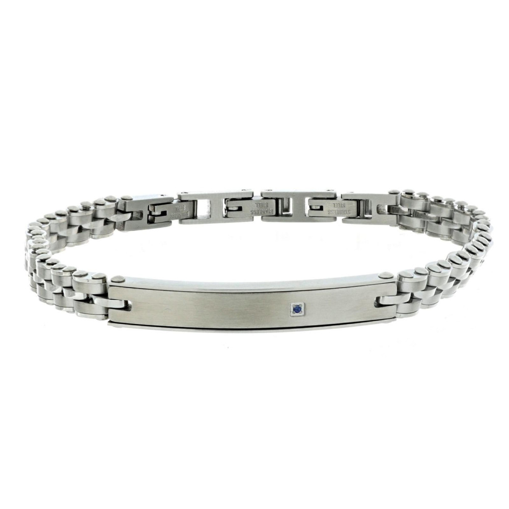 BRAC.IN ACCIAIO CM 22 CON 1 DIAMANTE BLU/SI 1MM CT 0,008