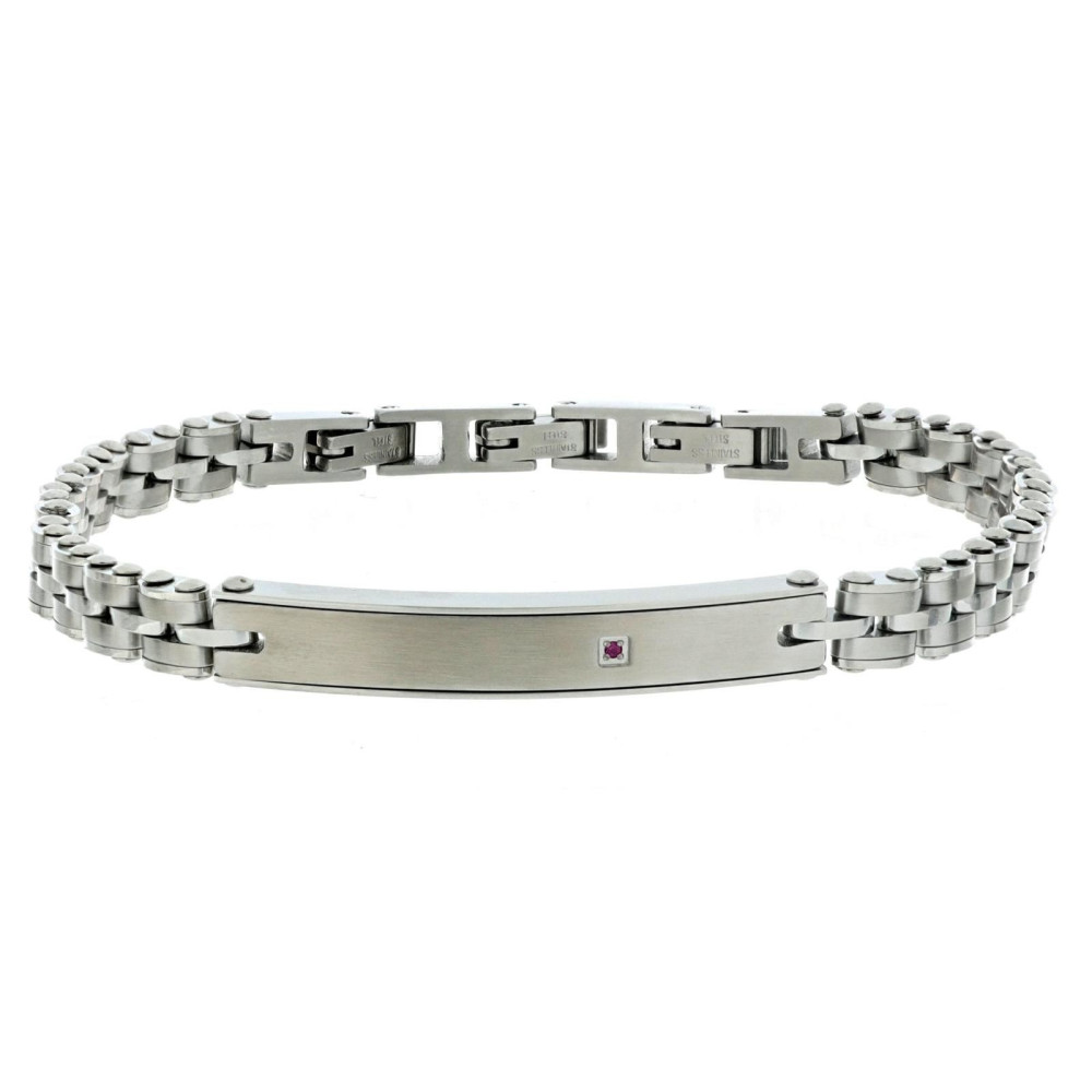 BRAC.IN ACCIAIO CM 22 CON 1 DIAMANTE ROSSO/SI 1MM CT0,008