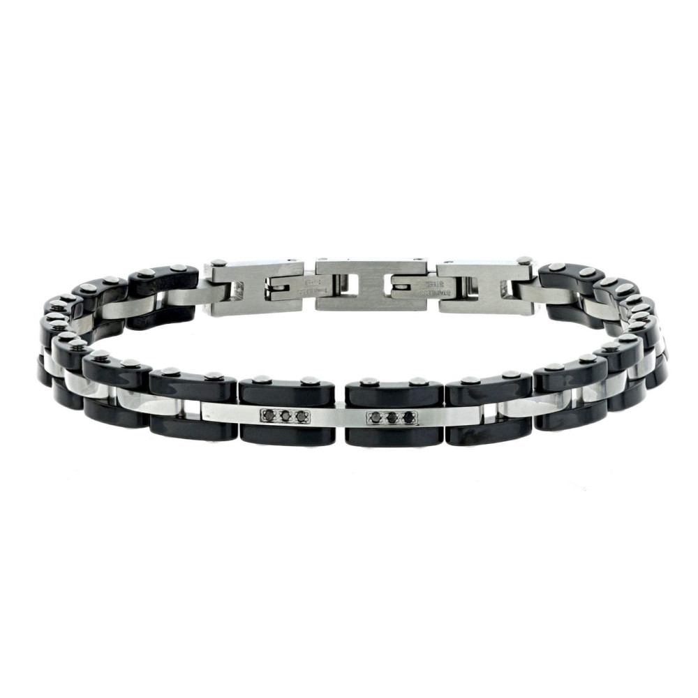 BRAC.IN ACCIAIO CM 21 CON 6 DIAMANTI NERO/SI 1MM CT 0,008