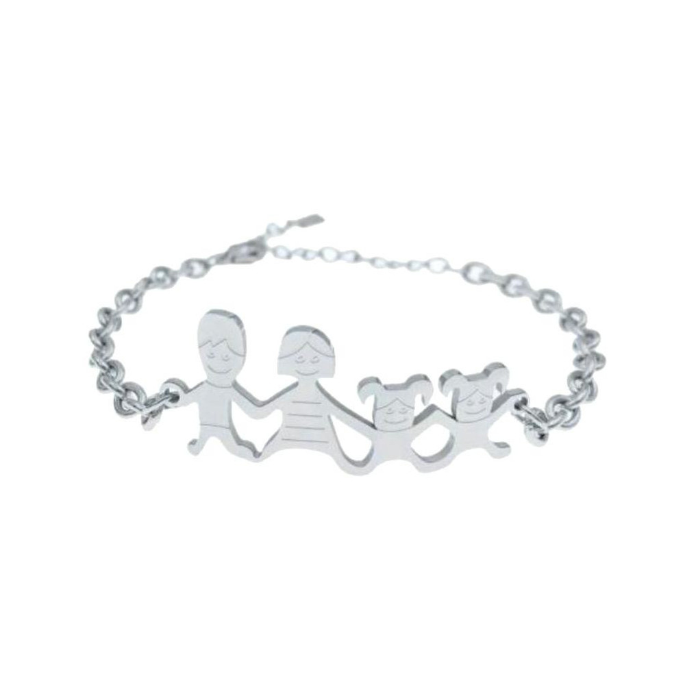 BRACCIALE FAMILY IN ACCIAIO PAPA', MAMMA E 2 BIMBE