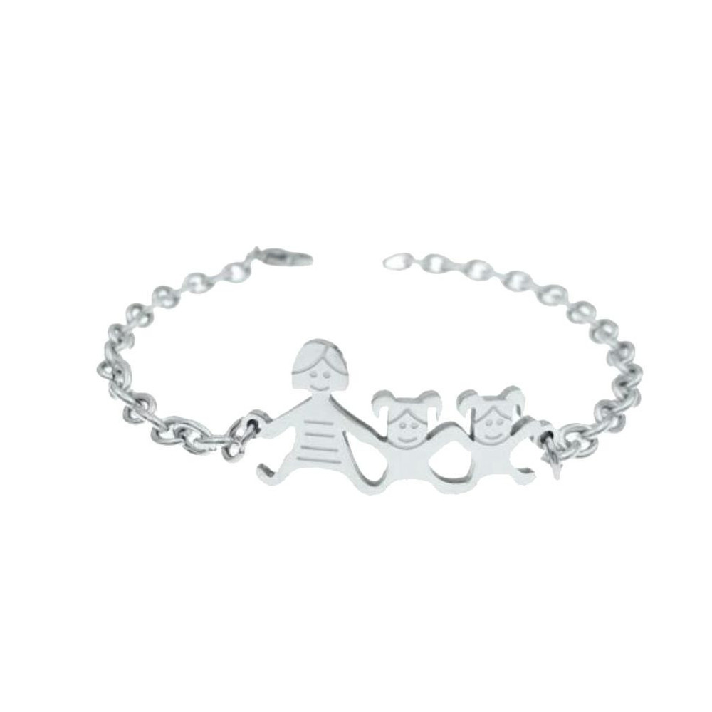 BRACCIALE FAMILY IN ACCIAIO MAMMA E 2 BIMBE