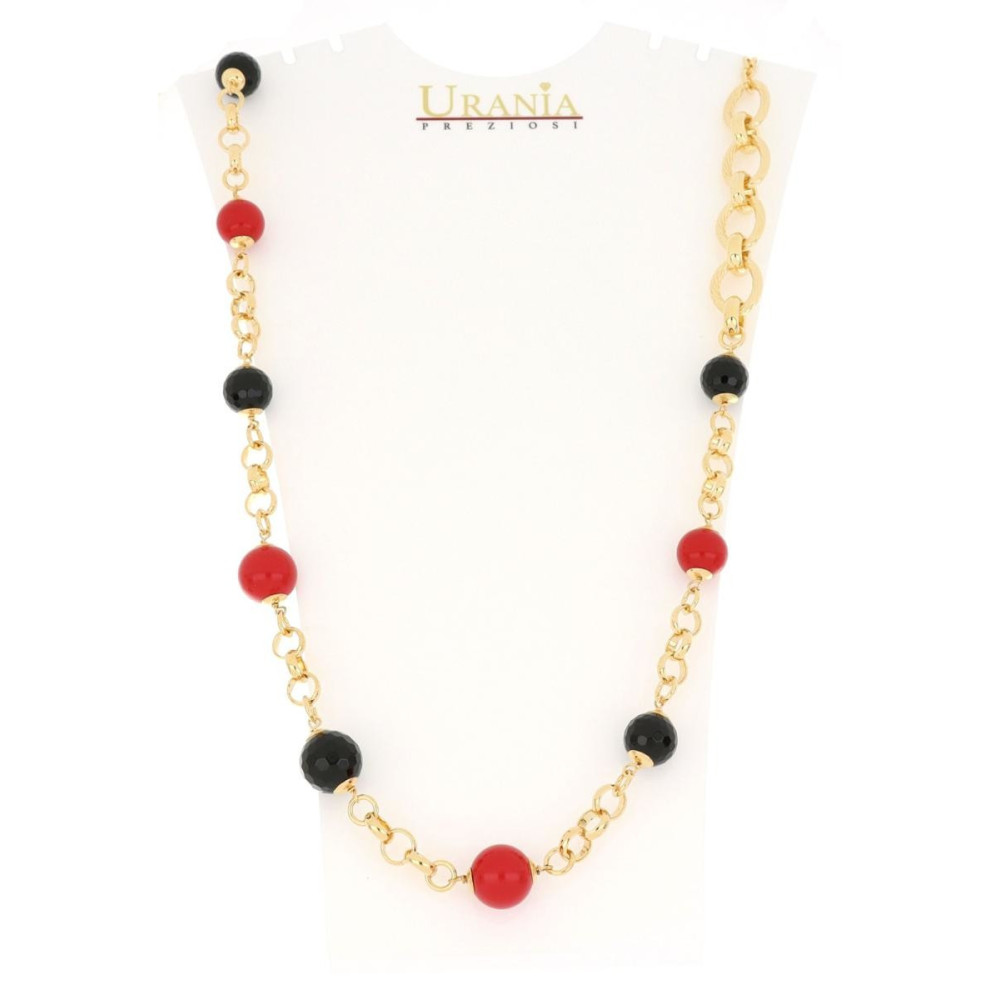 COLLANA "GIOIA" RODIATO CM 86 CON PIETRE ROSSE E NERE IN OTTONE