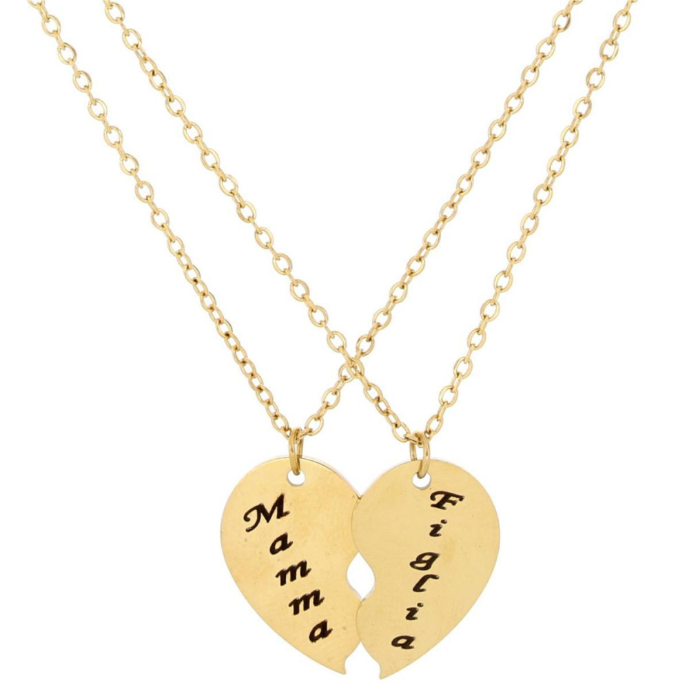 DOPPIA COLLANA MAMMA DORATA CM 37+5 CUORE SPEZZATO IN ACCIAIO