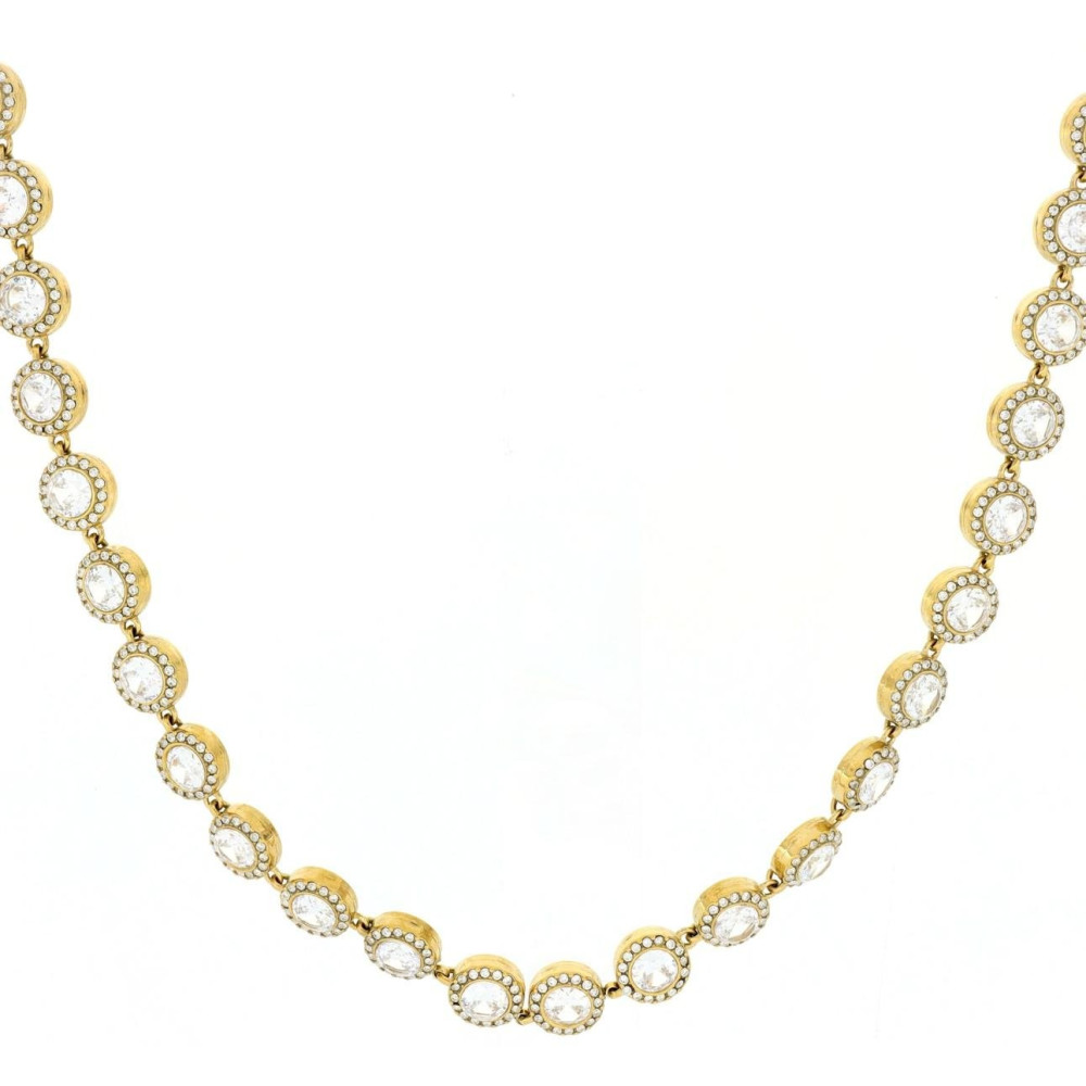 COLLANA CM 42+5 MINERVA IN ACCIAIO MM 8 DORATO CON PIETRE BIANC