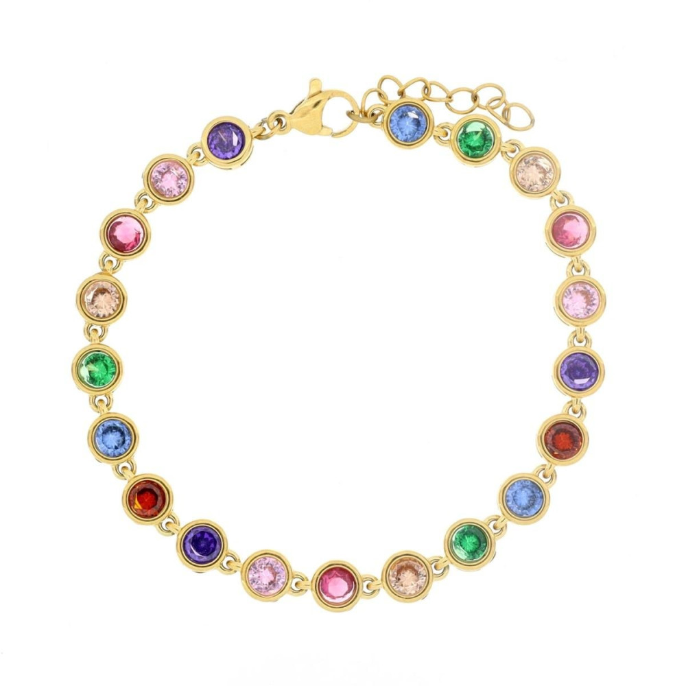 BR TONDO CM 16+3 MINERVA IN ACCIAIO MM 5 DORATO CON PIETRE COLOR