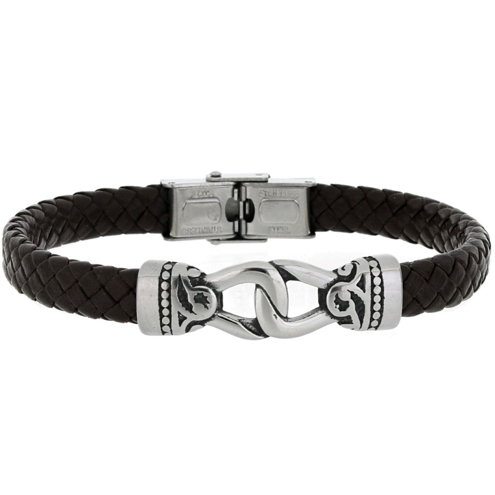 BRACCIALE "UOMO" CM 21 IN PELLE E ACCIAIO