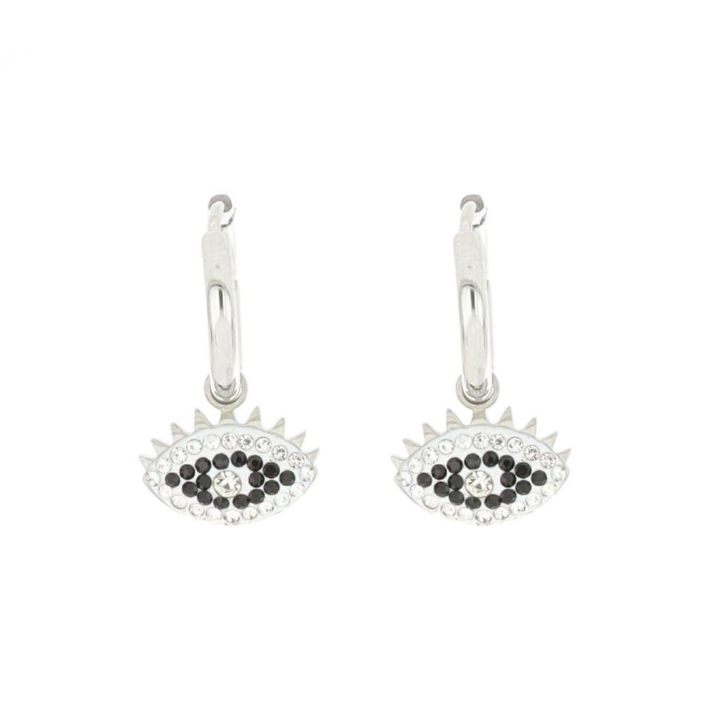 ORECCHINI BOCCOLA "ADANA" OCCHIO CON ZIRCONI IN ACCIAIO