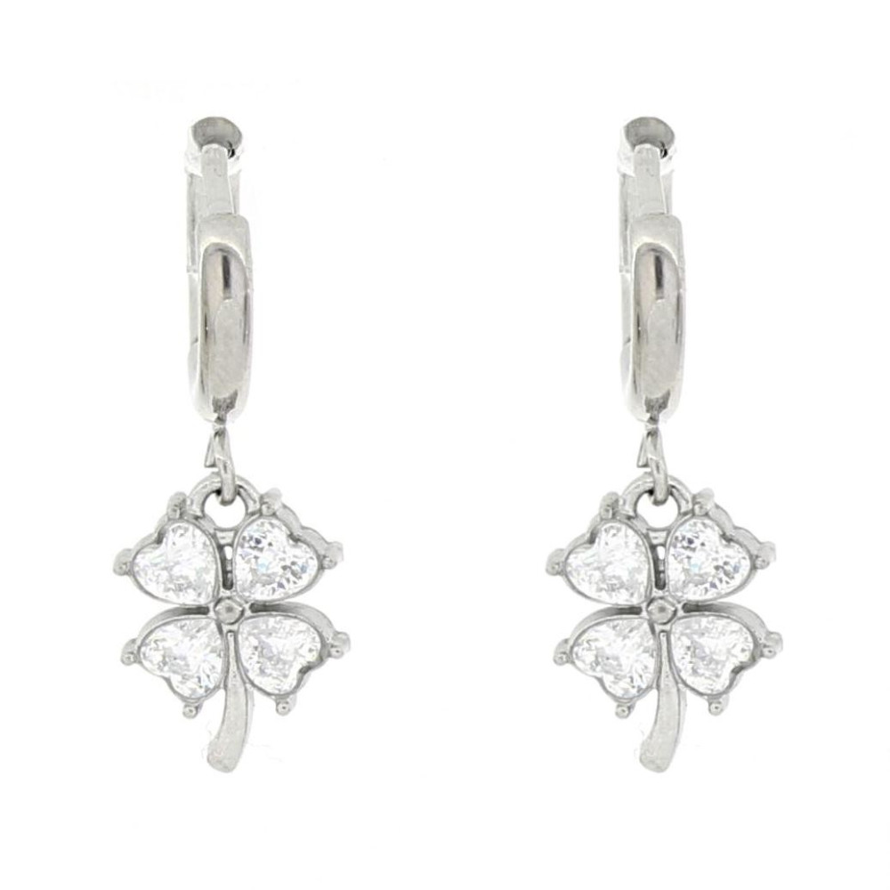 ORECCHINI "ADANA" BOCCOLA CON QUADRIFOGLIO IN ACCIAIO