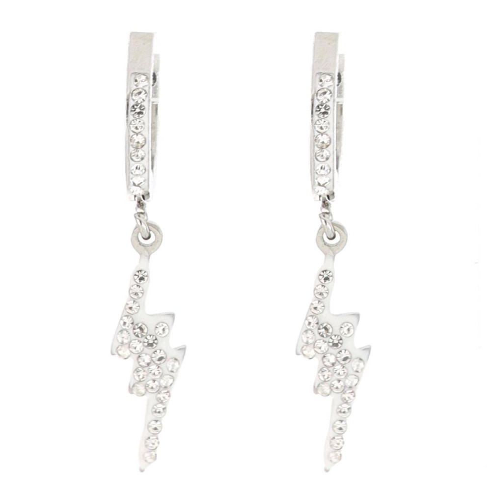 ORECCHINI BOCCOLA "ADANA" SAETTA CON ZIRCONI IN ACCIAIO