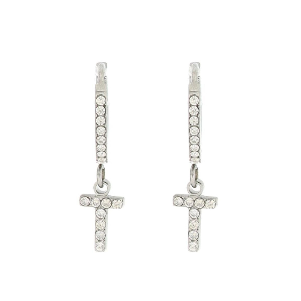 ORECCHINI A BOCCOLA CON LETTERA T IN ACCIAIO