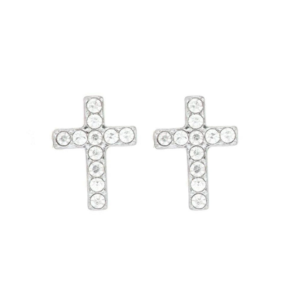 ORECCHINI A LOBO "ADANA" CROCE MM 12x8 CON ZIRCONI IN ACCIAIO