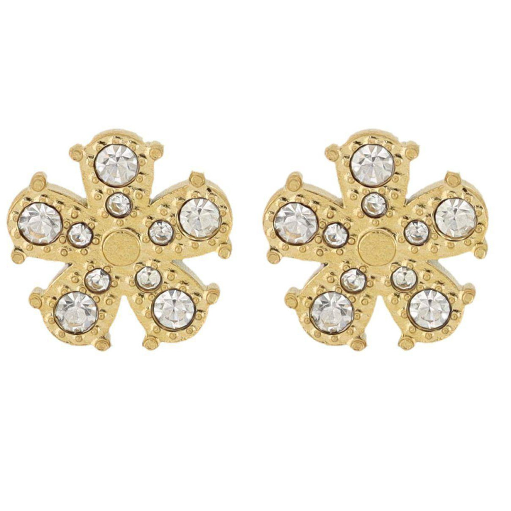 ORECCHINI A LOBO "ADANA" 10MM FIORE CON ZIRCONI IN ACCIAIO