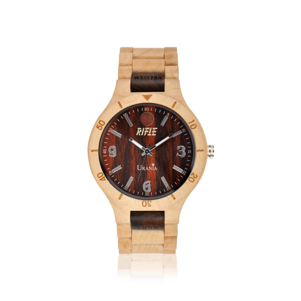 OROLOGIO UOMO IN LEGNO CON CASSA ACERO CHIARO BRACC ACERO CHIARO