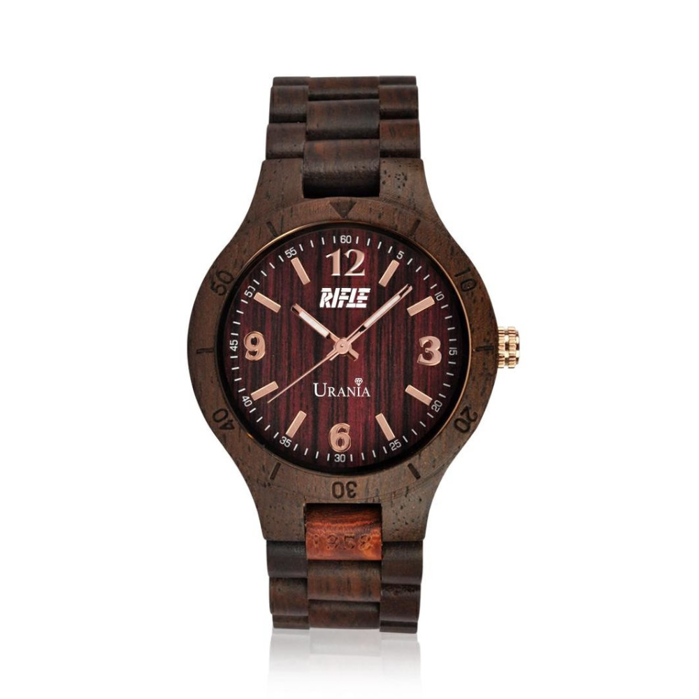 OROLOGIO UOMO IN LEGNO CON CASSA ACERO SCURO BRACCIA ACERO SCURO