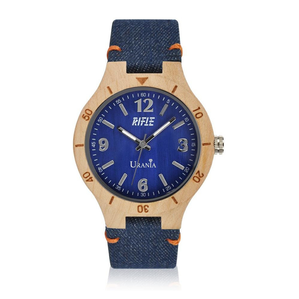 OROLOGIO UOMO IN LEGNO CON CASSA ACERO CHIARO CINTURINO DENIM