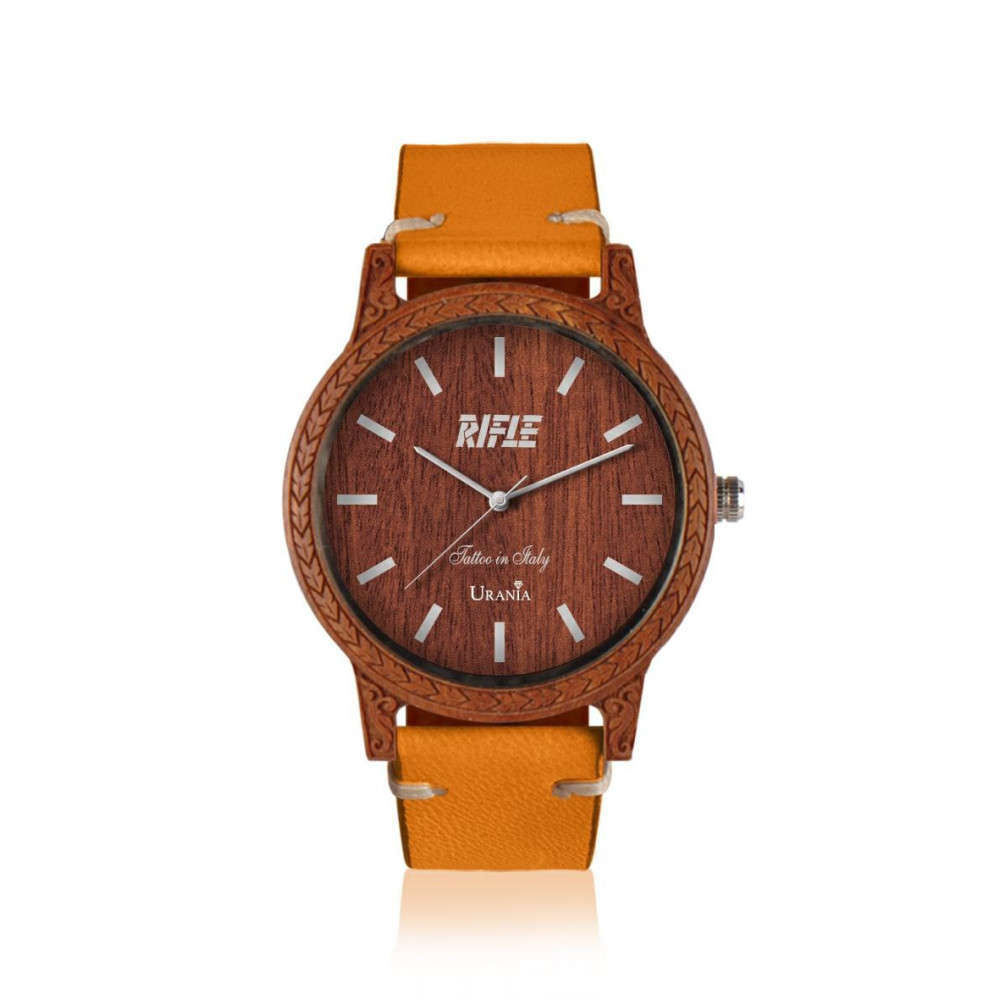 OROLOGIO UOMO IN LEGNO CASSA SANDALO ROSSO INCISA CINT PELLE INV