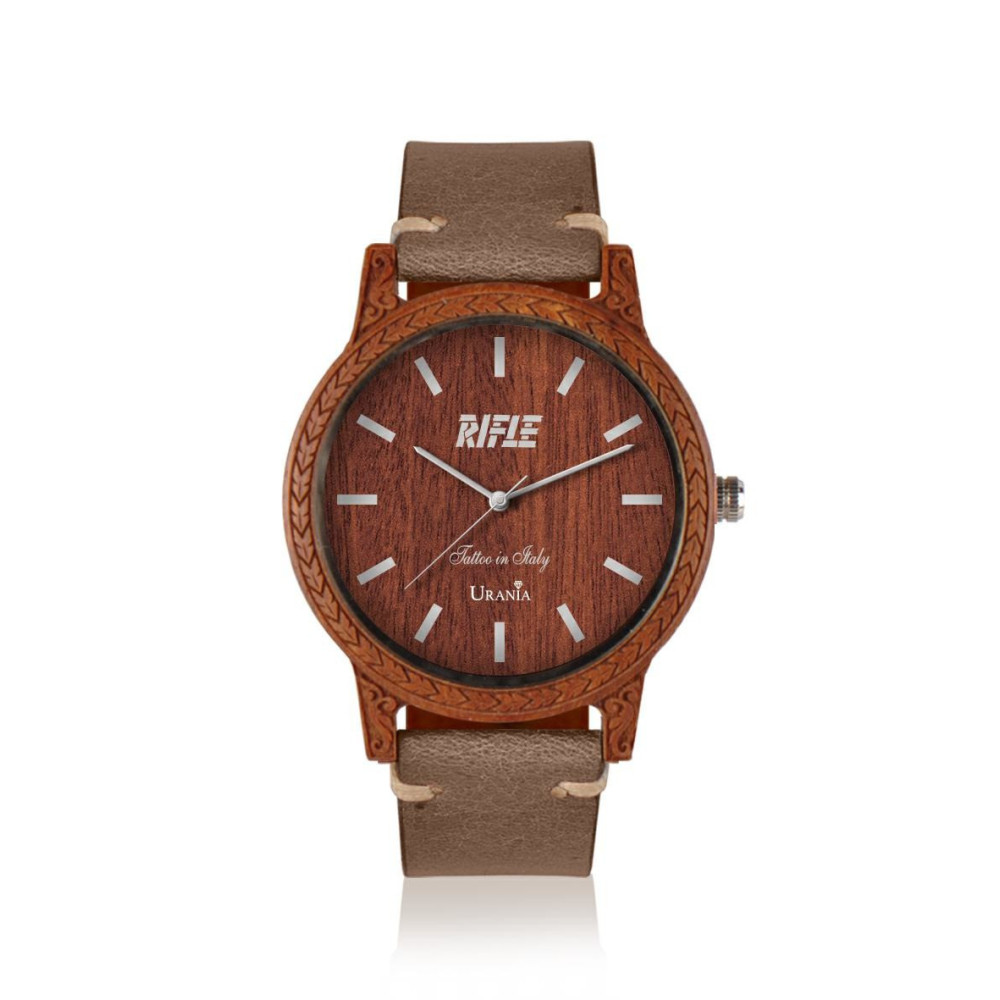 OROLOGIO UOMO IN LEGNO CASSA SANDALO ROSSO INCISA CINT PELLE INV