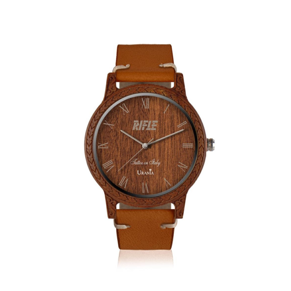 OROLOGIO UOMO IN LEGNO CASSA SANDALO ROSSO INCISA CINT PELLE INV